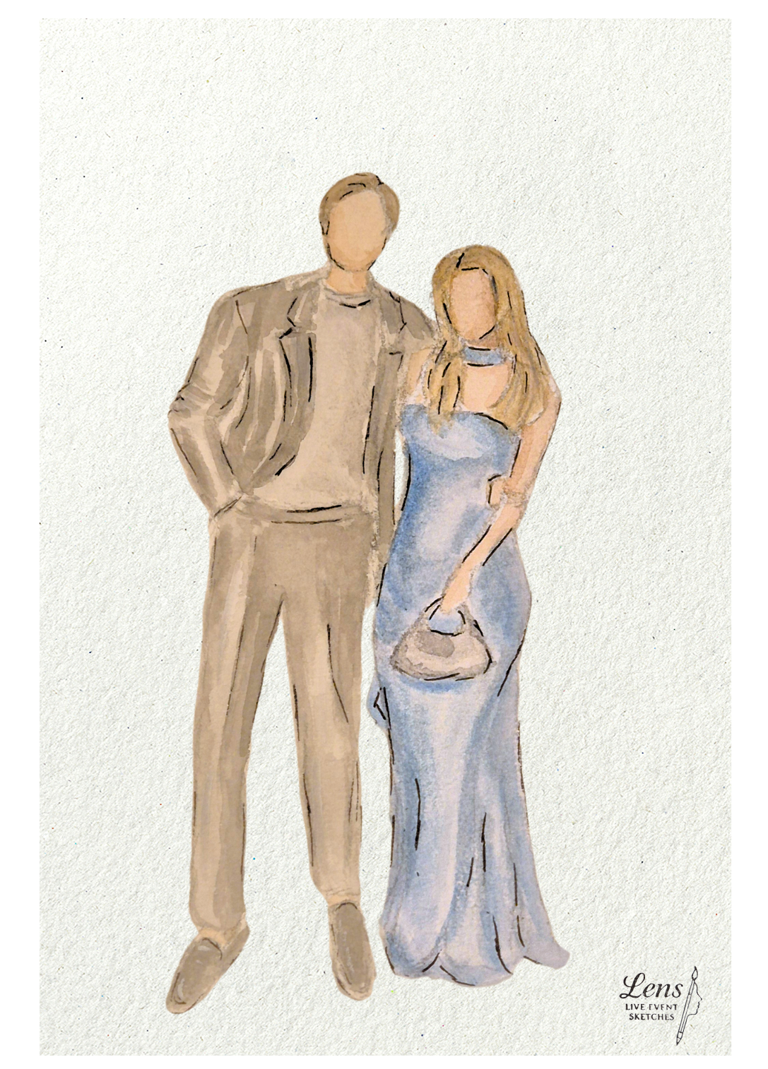 Ik maak live aquarelportretten van gasten op bruiloften en evenementen.
